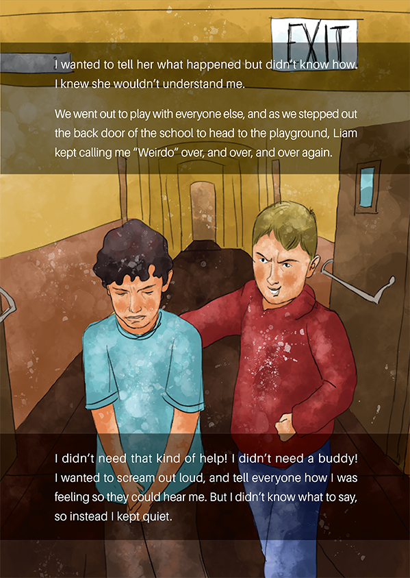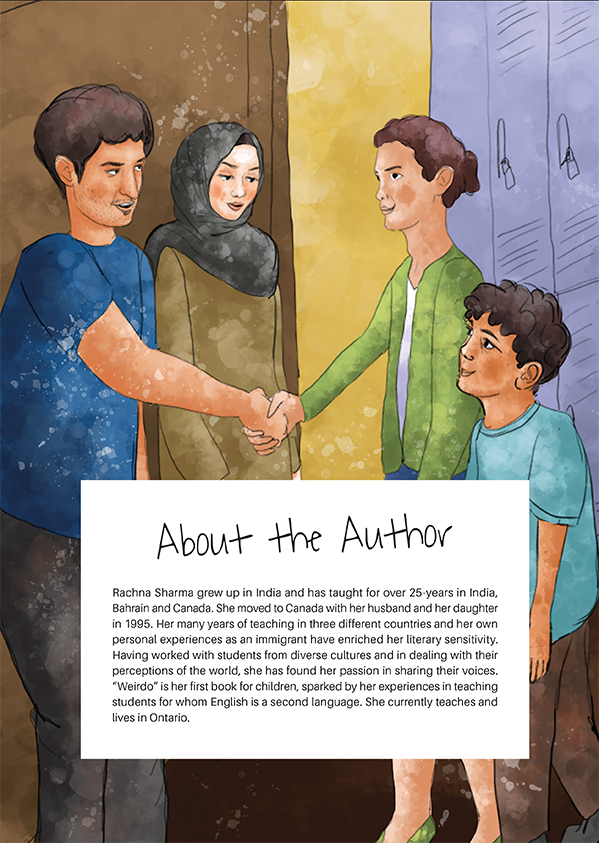 Weirdo is a story about a young boy who is a new immigrant to Canada. On first day of school he meets his teacher and class. Everyone is very kind and helpful but there is one bully who starts picking on him.